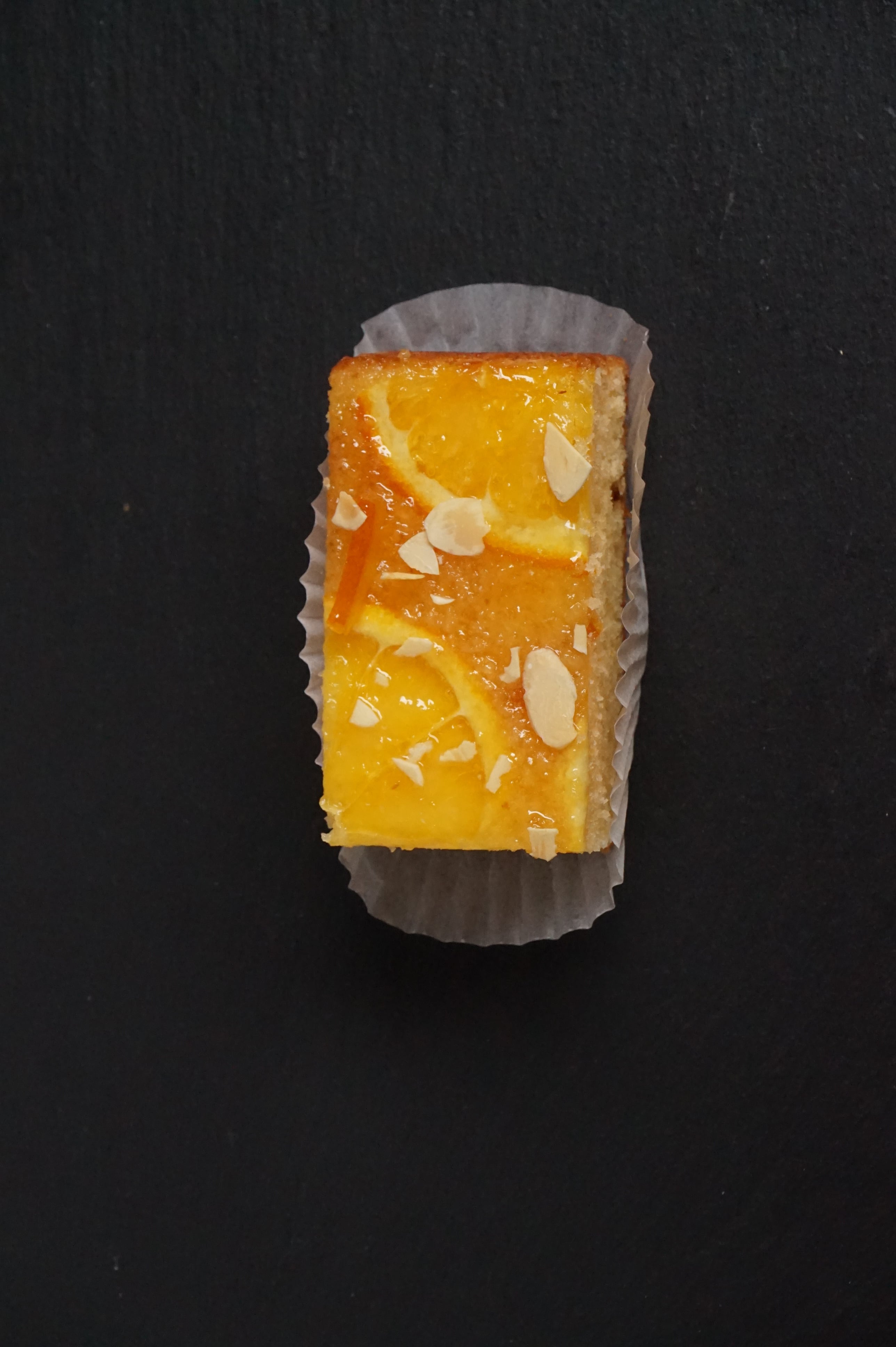 原材料:バター、砂糖、卵、小麦粉、マーマレード、アーモンドパウダー、オレンジ、アーモンドスライス、塩/膨張剤